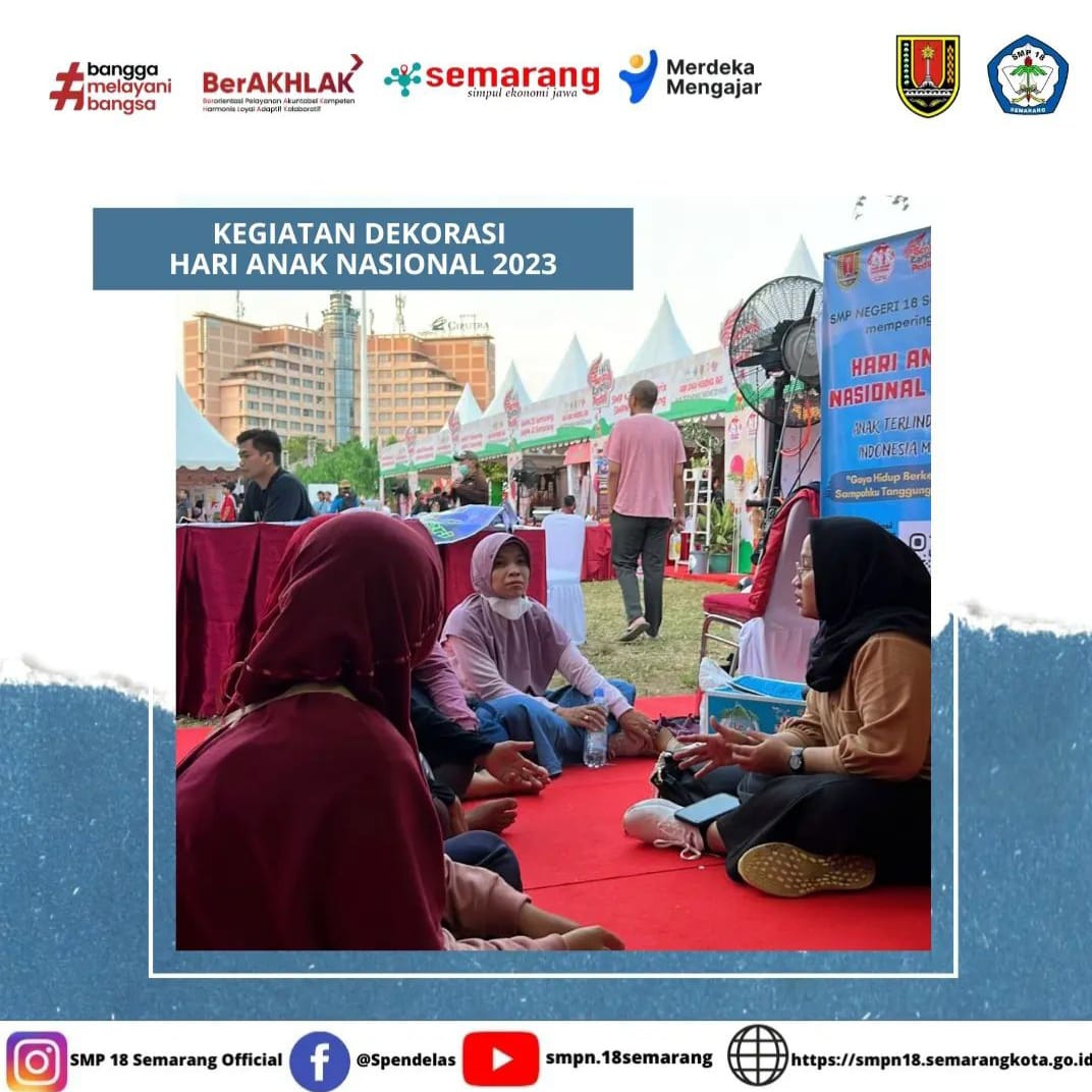 SMP Negeri 18 Semarang mengikuti kegiatan Pameran dalam rangka peringatan Hari Anak Nasional pada hari Sabtu, 22 Juli 2023 bertempat di Lapangan Pancasila Simpang 5 Semarang.
